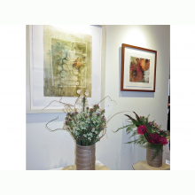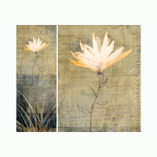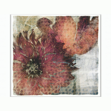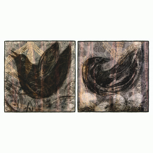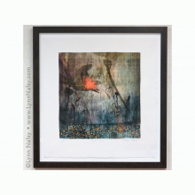 This is the first in a new series of mixed media works constructed on layers of Dura-Lar (translucent film), acrylic sheet, and wood panel. Continuing my interest in fusing hand techniques with digital processes, some of the methods and materials used include image pigment transfers, colored pencil, ink, graphite, and collage.